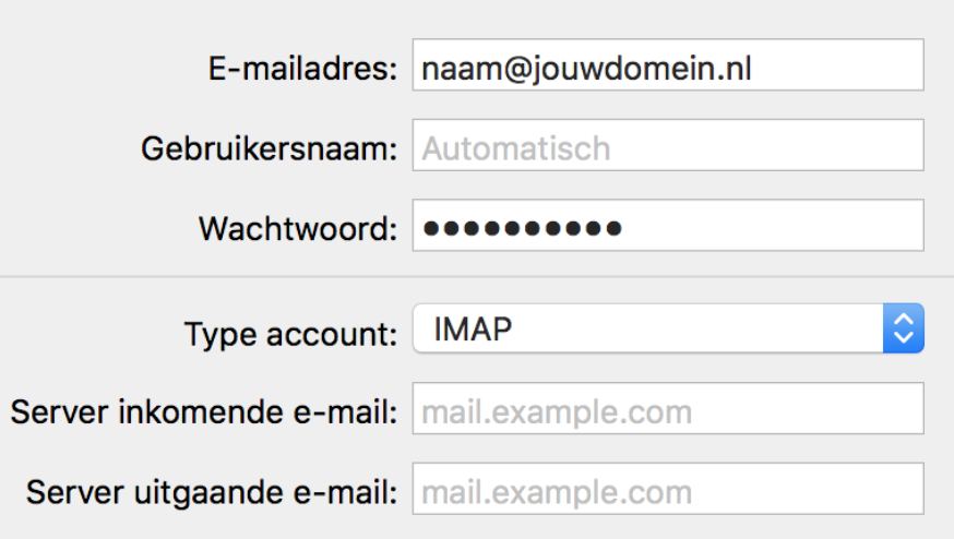 * Server inkomende mail: mail.jedomeinnaam.nl