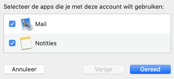 - Vink desgewenst het vakje voor Notities uit zodat alleen Mail aangevinkt is en klik op Gereed.
